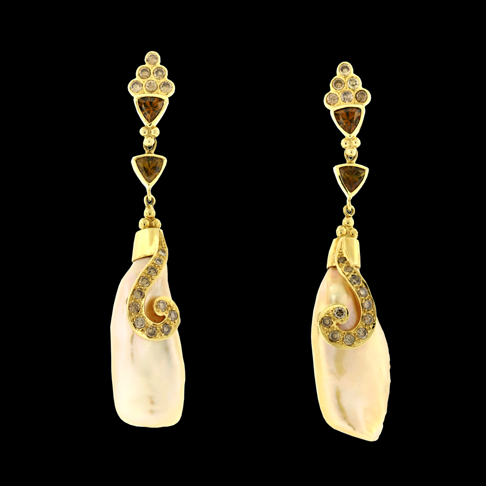 18K yellow gold with Andradite Garnet, Pearl and? Diamond..