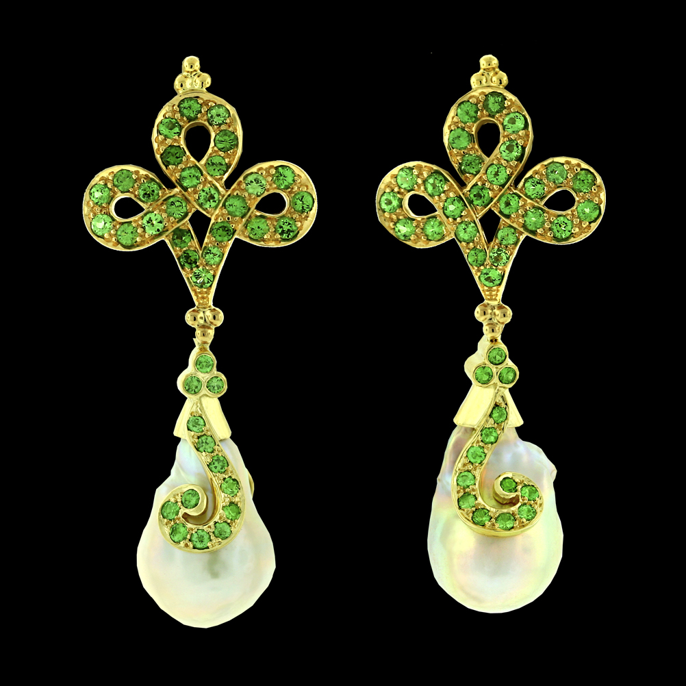 18K yellow gold with Tsavorite, Cultured Pearl Crevoshay Chinoiserie Series.