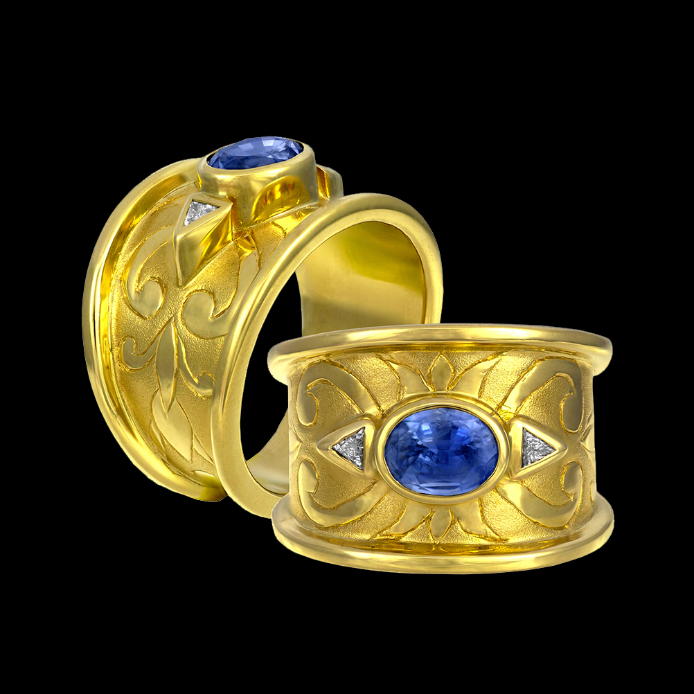 18K yellow gold with Sapphire and Diamond.