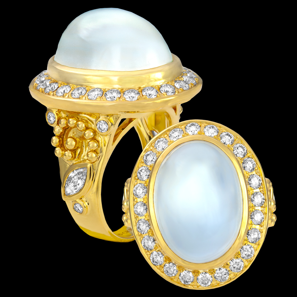 18K yellow gold with Moonstone and Diamond.
