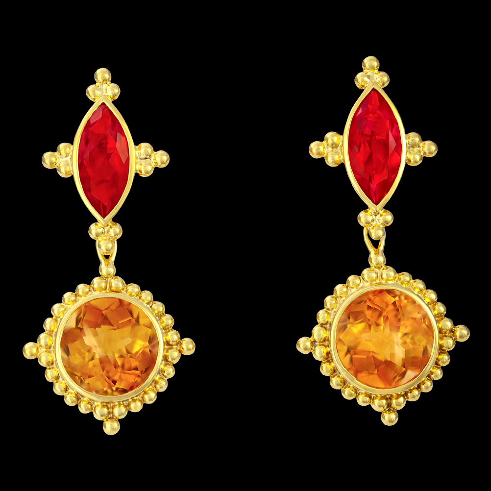 18k yellow gold Crevoshay earrings are both elegant and festive! For greater versatility and value to the owner, the drops are detachable for two earring looks in one.? ?18K yellow gold with Opal and Madeira Citrine.