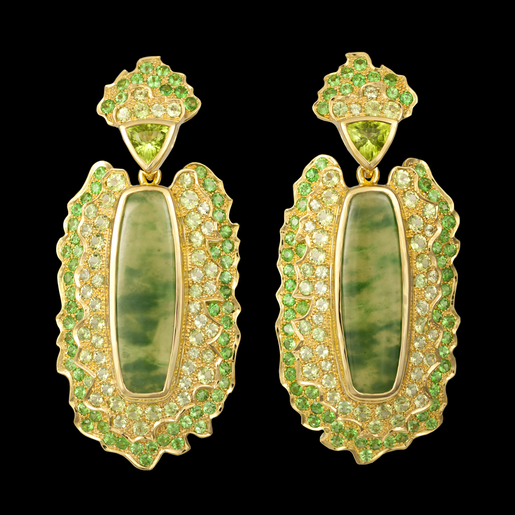 18K yellow gold with Idocrase in Quartz, Peridot and Tsavorite.