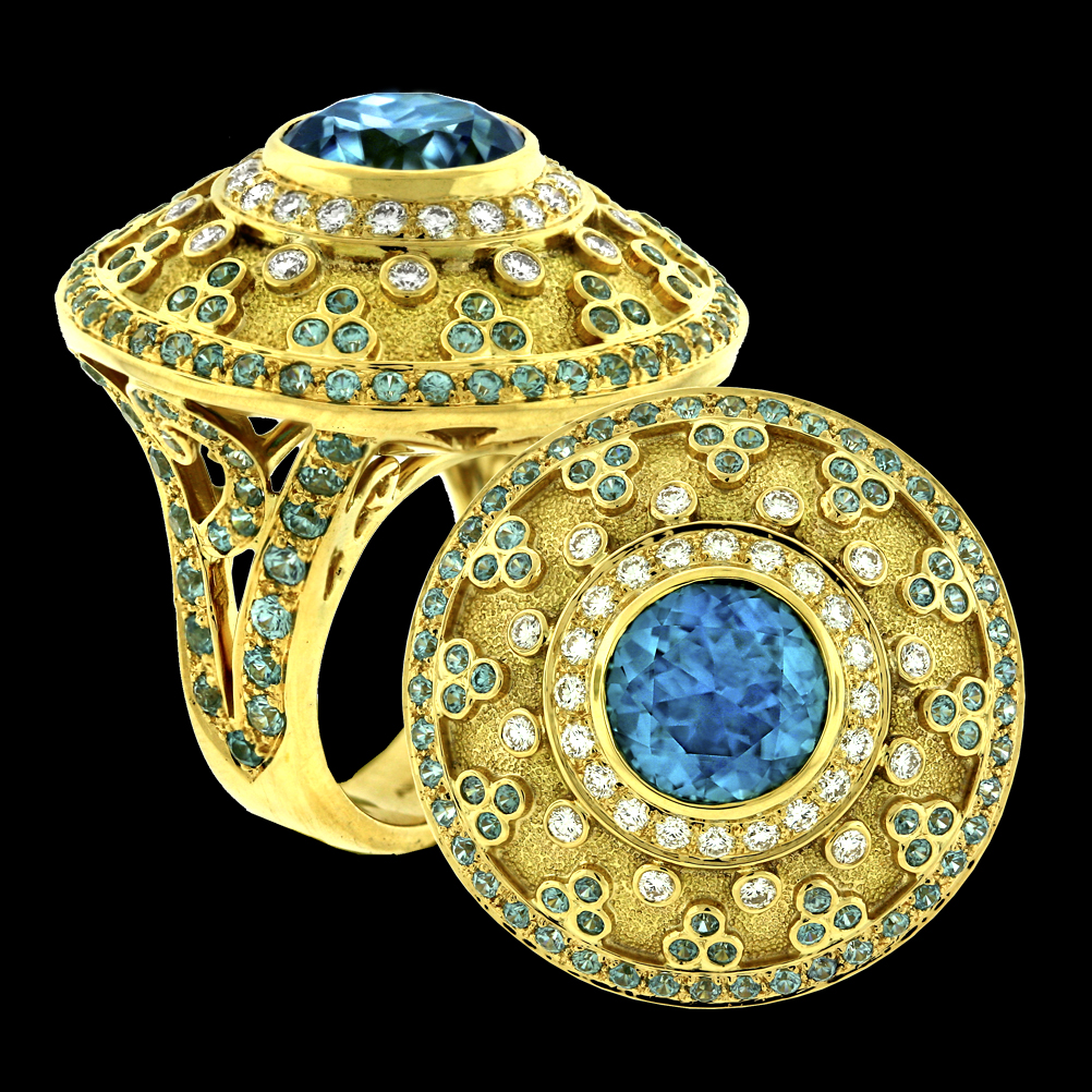 18K yellow gold with Zircon and Diamond.