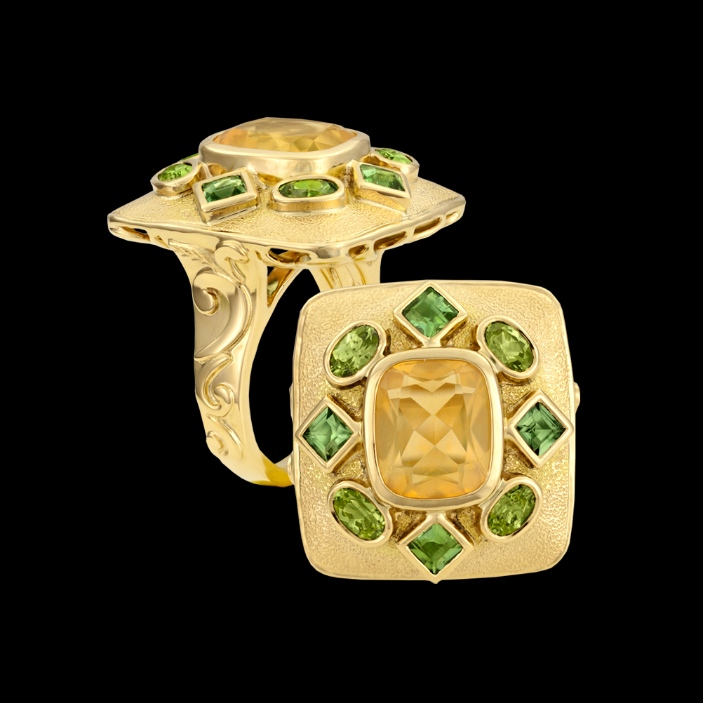18K yellow gold with Opal, Garnet and Tourmaline.