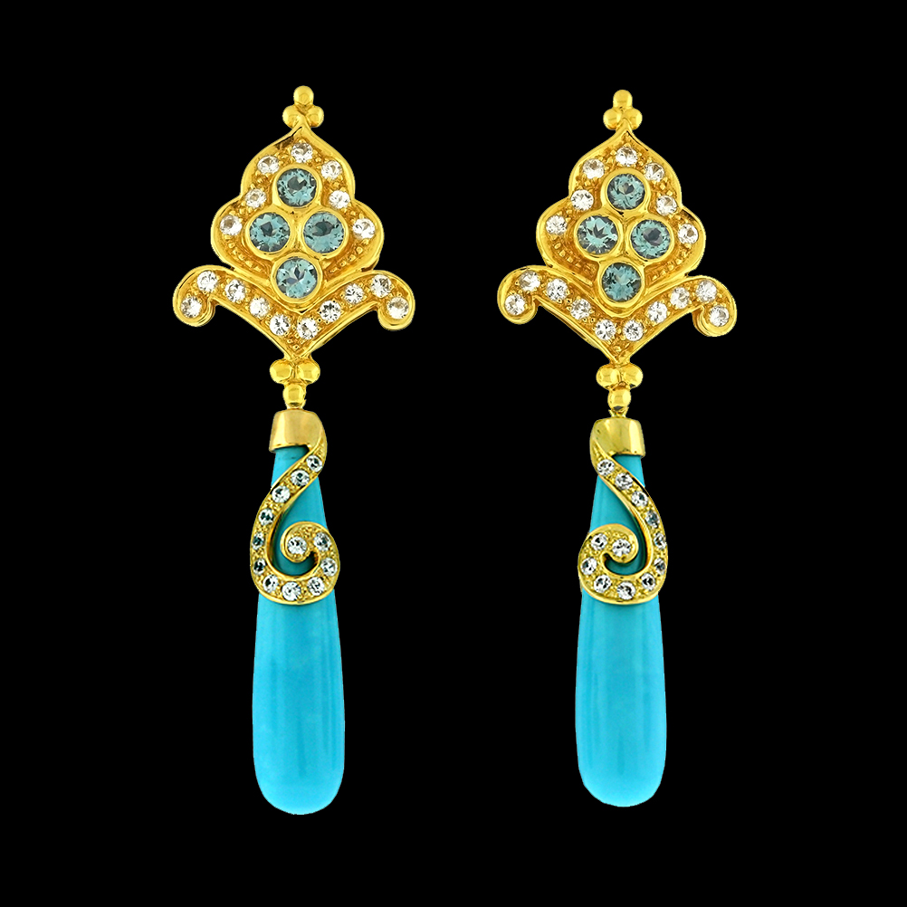 18K yellow gold with Aquamarine, Sapphire, Turquoise and Zircon.
