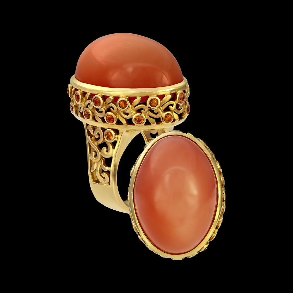 18K yellow gold with Garnet and Moonstone.