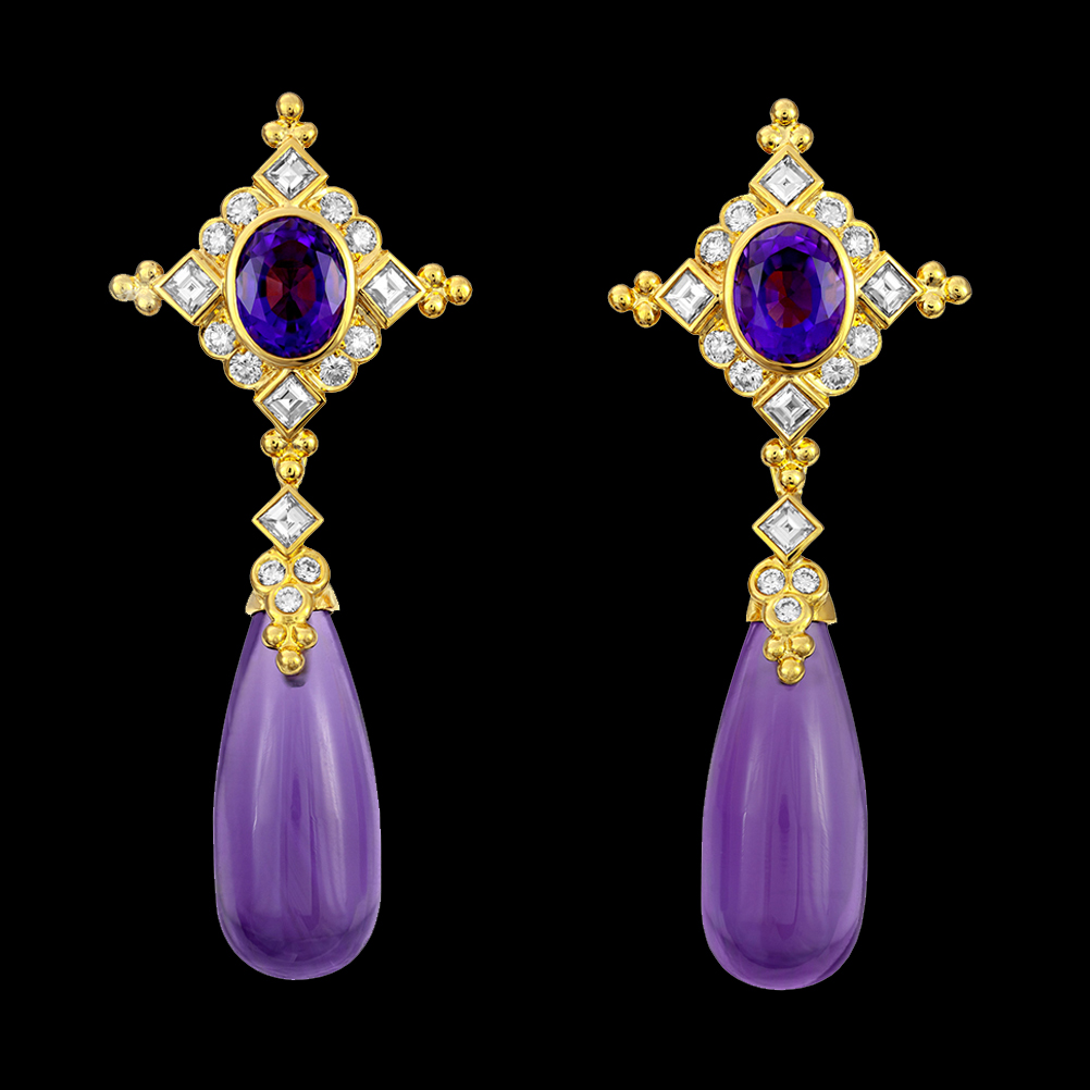 18K yellow gold with Amethyst and Diamonds.
