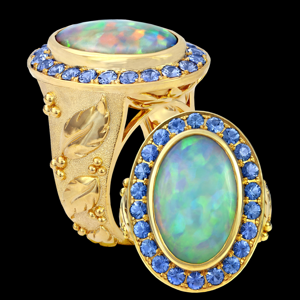 18k yellow gold with Opal and Sapphires.