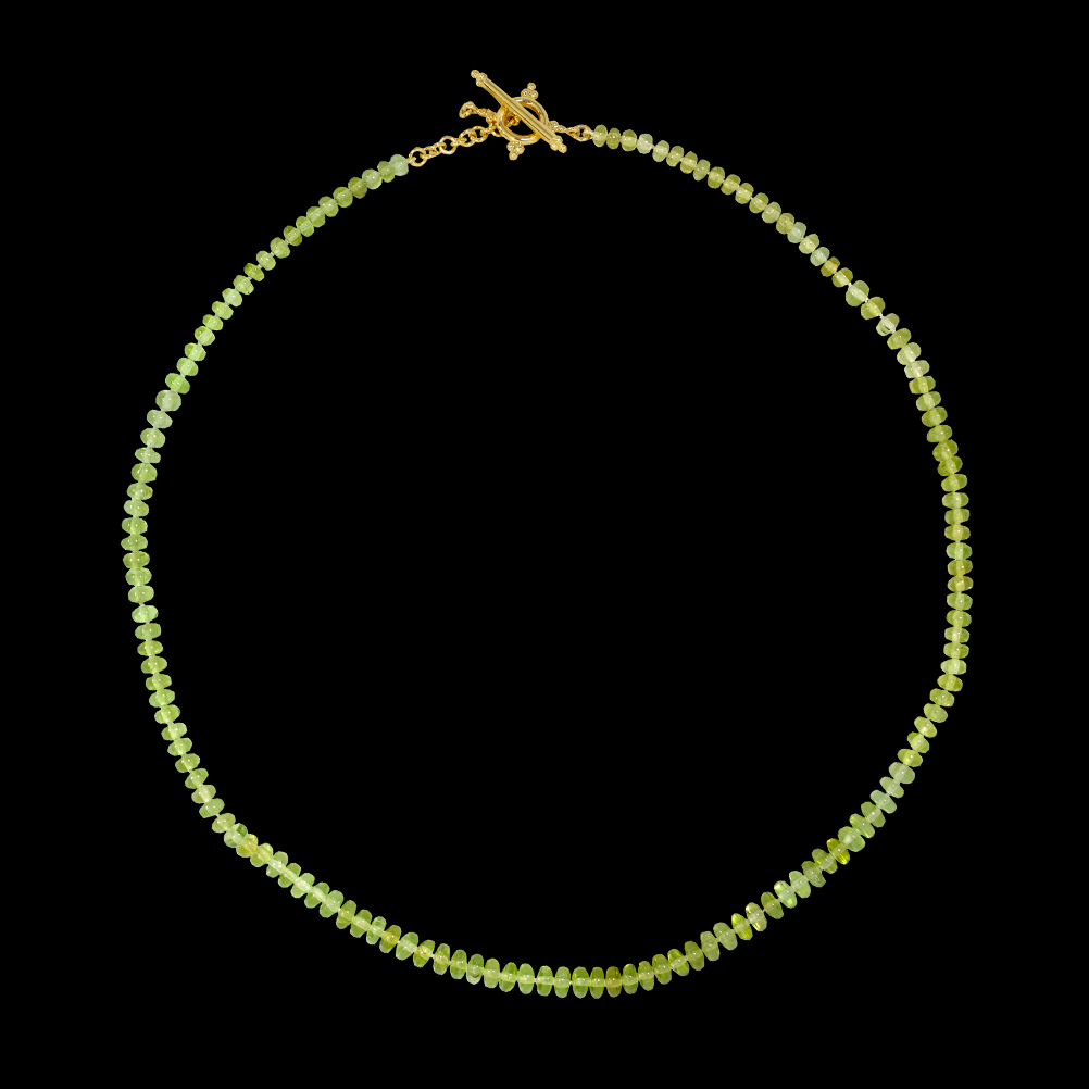 18k yellow gold toggle. Peridot.
